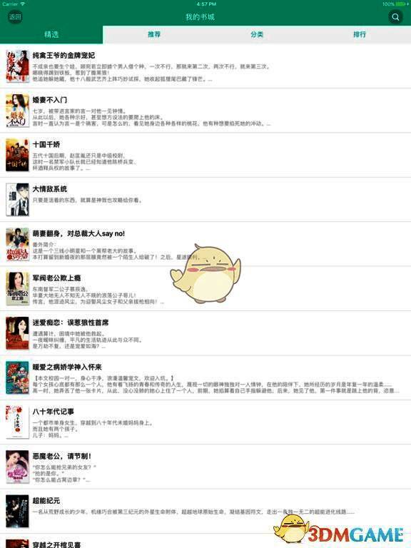 内容覆盖总裁豪门小说、言情小说、穿越架空小说、玄幻小说、青春校园小说、修仙小说、悬疑小说、同人小说、名著、生活等各种类型。阅读过程中无广告弹出。