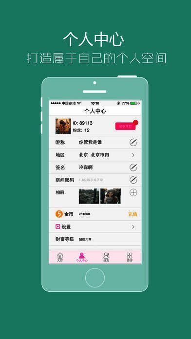 人人免费创建个人房间,分享上传语音、视频、照片等生活娱乐信息,建立自己的粉丝群体,同小伙们互动娱乐。