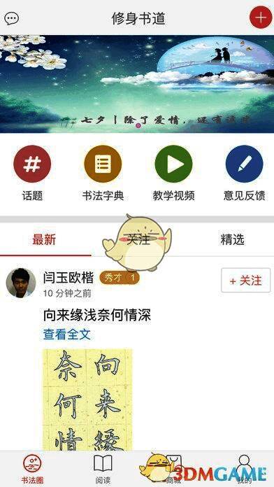 《修身书道》是一个书法爱好者的聚集平台。本平台为用户停工专业的书法练习指导,帮助用户提升自己的书法技艺,或者是与志同道合的书法爱好者在线切磋书法水平,享受书法带给我们的精神上的享受。