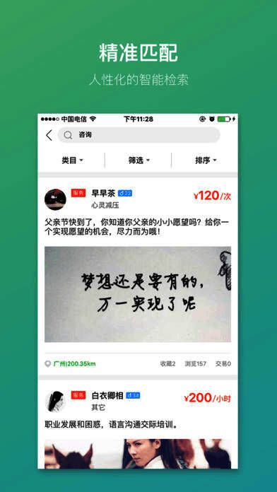 4、精准匹配:按照你的需求寻找服务,可即时沟通保障整个交易过程。