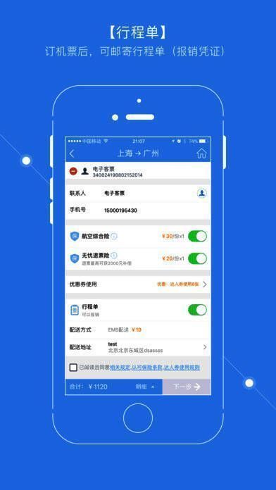 1、机票预订:快捷预订国内/国际单程、往返机票,支持在线退改升服务;