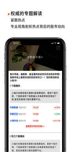 提供股票知识、股票分析、股市最新消息、专业研报、宏观经济热点资讯与热点解剖。内容涉及财经、股票、基金、期货、债券、外汇、银行、保险等诸多金融资讯与财经信息,全面覆盖财经领域,集结众多国内炒股高手、经济学者和民间老师,贴合移动粉丝用户碎片化时间,随时随地看股市;