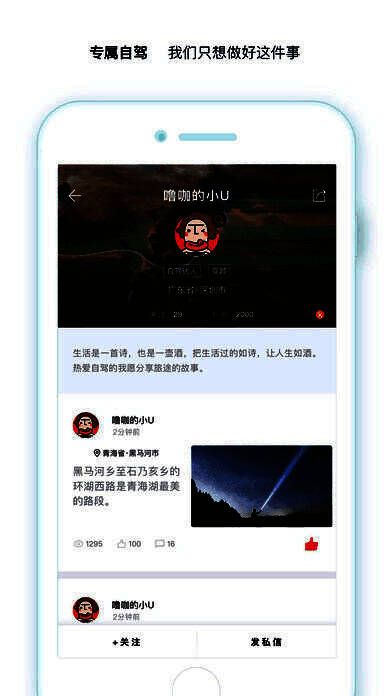 噜咖自驾app是非常不错的自驾分享平台,平台上有许多自驾旅游达人分享的各种自驾游视频和旅途美景,你也可以将自己的自驾游心得路线分享出来,和大家一起交流。噜咖自驾一条平凡却不愿平庸的路。噜咖自驾为你走遍大江南北,挖掘路上最精彩的人和事,发现自驾更多深度的玩法。立即下载噜咖自驾,尽情释放你的江湖豪情,重新定义你的自驾生活。