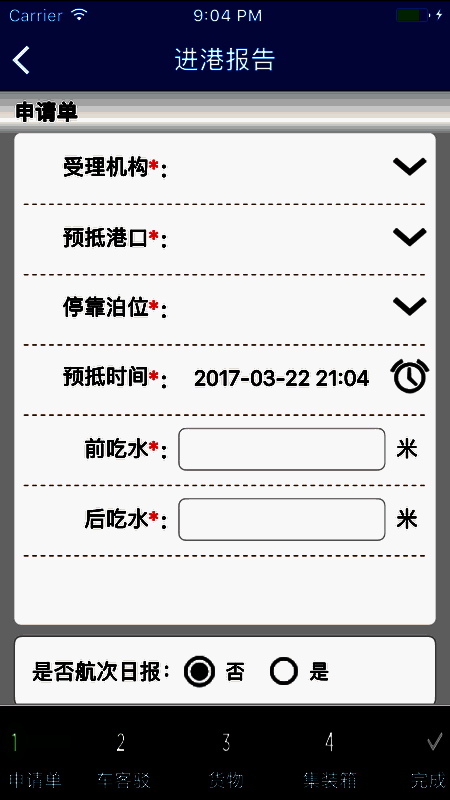 3、进入采区的船舶提前4小前申报“船舶进港”: