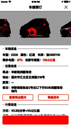 众行EVPOP是款分时租赁的汽车服务手机APP;主要目的就是针对出门需要用车的朋友设计推出,软件用户的租赁服务便捷,只要你将需要的应用下载安装,就可以在线的预约车辆,如果找不到预约的车辆,可以进行导航的查看,并且可以设置预约车辆的位置;而且计费方式也透明,汽车的使用是按分钟计算,缴费也方便,在线的可以查看到费用,喜欢的用户千万不要错过!
