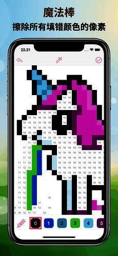 玩法简单,在写着数字的像素格子中填入对应数字的颜色,就能完成一幅超棒的彩色像素画!