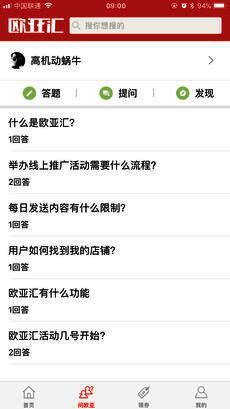 【互动问答】欧亚汇开辟了在线问答。用户可以借此交流真实的购物经历、分享真实的购物心得;