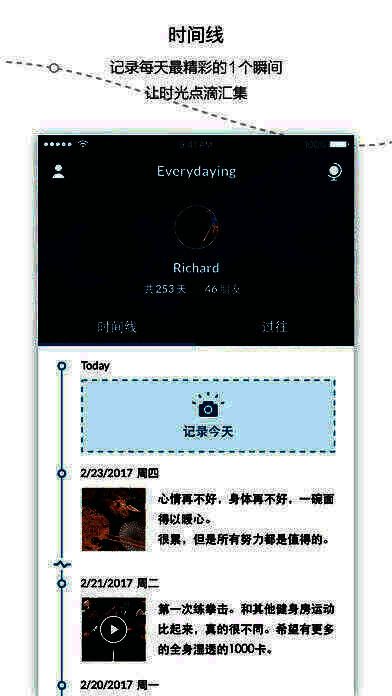 Everydaying 把你每天最精彩的时刻以时间轴串起来,并存储在云端,让你随时随地回味。在这里,你可以和你最亲近的朋友分享你的每一天。