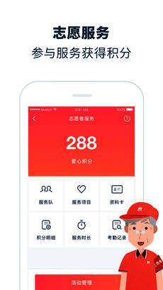 完成每天志愿服务获得积分,积分可以商城兑心仪商品;