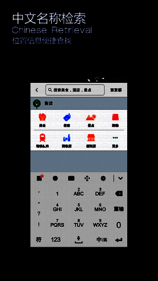 全中文检索,只需输入中文就可以检索到对应的日本设施及地点。检索结果贴心的采用中日双语对照显示,便于和日本的店名路牌街道地址进行对照;