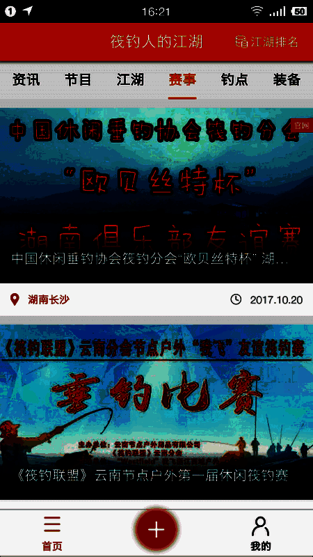 赛事:发现各类筏钓赛事,查看赛事规程、赛事成绩、赛事动态。