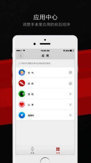 3、应用排序:在App里可以调整手表应用的前后顺序;