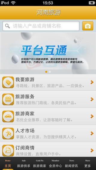 《河南旅游平台》通过对旅游行业细化和行业信息汇聚,为旅游相关行业的生产商,经销商以及需求商提供庞大的移动电子商务网上贸易平台;整合旅游供求双方资源,为旅游供应方和需求方提供推广和销售渠道。
