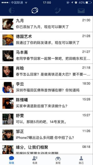 院校际客是际客网的校友版,为个人与机构用户打造的全方位交流平台,满足用户沟通、社交、资讯、招聘等多维需求,同时预置各高校校友群组,让大学生直接注册进入自己的校友群,不仅活跃气氛,方便校园交友,更协助他们步入职场、走向社会。毕业前后,大学生们在这里获取机构信息、各方资讯,在这里探讨话题、分享资料、交流心得,并且利用这里的多种渠道方式与未来伴侣、事业同好、行业精英、职场达人、用人单位、潜在伙伴等等进行沟通。