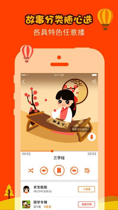 亲宝听app宝爸宝妈的早教神器,0-10岁孩子的故事大王。亲宝听拥有全面的内容分类,包括国学、成语、神话、唐诗、儿歌、童话等音频内容,以及新增的亲宝少儿动画视频,还有妈妈们关注的备孕、孕期、胎教、幼儿营养、育儿教育理念等等。