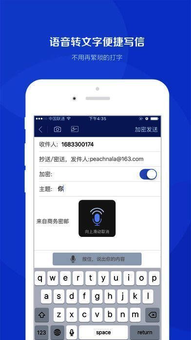 《商务密邮》,一款专为加密信息准备的邮箱。所有邮件内容均经过层层加密,保证您的文件信息安全。还可以发送语音内容,让您发邮件更加便利。快来下载体验一下吧。