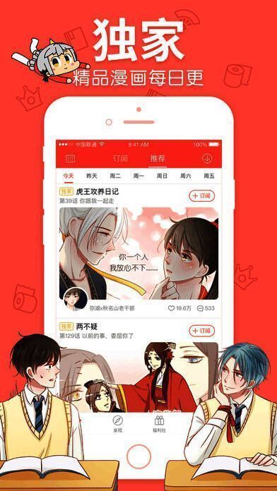 4、专属订阅:熟记朋友们订阅过的漫画,每人不一样;