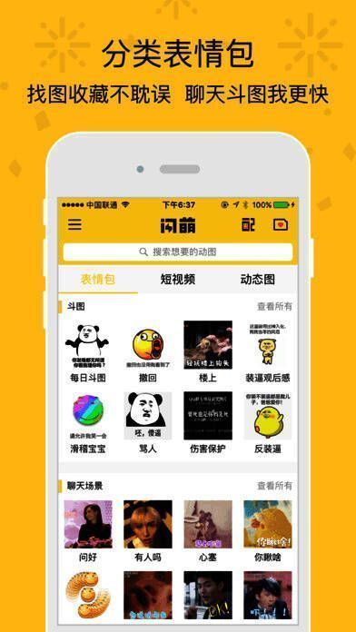 《闪萌》是一款集表情、明星、搞笑、美女短视频GIF表情包全搜索的娱乐软件,最全的斗图表情工厂,最好的微信表情GIF制作器,好玩有趣的表情都在这里,喜欢萌萌哒的表情包吗?快来下载体验吧!