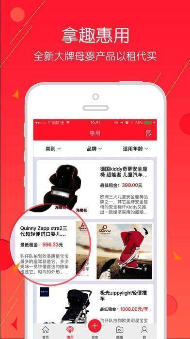 2、高端全新宝贝用品低价租,卖价一折起。用完直接退,省心省钱省力;