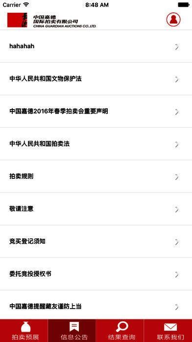 2、新闻中心:发布一些嘉德官网公告和新闻;