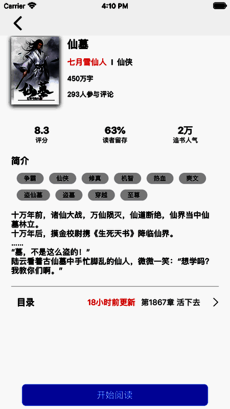 3、全本都是免费的,还有首页各种最新和热门书籍的推荐,搜索便利。