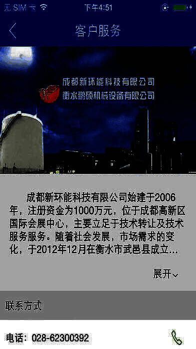 成都新环能科技有限公司始建于2006年,注册资金为1000万元,位于成都高新区国际会展中心,主要立足于技术转让及技术服务服务。随着社会发展,市场需求的变化,于2012年12月在衡水市武邑县成立了衡水鹏硕机械设备有限公司。