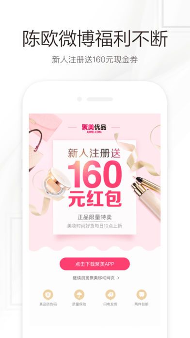 2、聚美优选:为你倾心打造,精心筛选,把每一分钱都花在品质上;