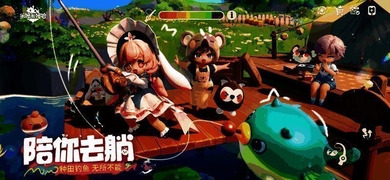 钓鱼是游戏中重要的休闲玩法之一。不同等级的水域栖息着种类繁多的鱼类:在家园可钓到西瓜鱼、甜橙鱼等水果主题小鱼;树野与巨树岛则分布着行云飞鱼、辣椒鳗等稀有品种;而前往好友岛屿或瀑布区域,更有机会邂逅云丝水母、泥泥目等特殊生物。随着钓鱼等级提升,玩家不仅能解锁图鉴,还能获得用于制作与交易的珍贵材料。