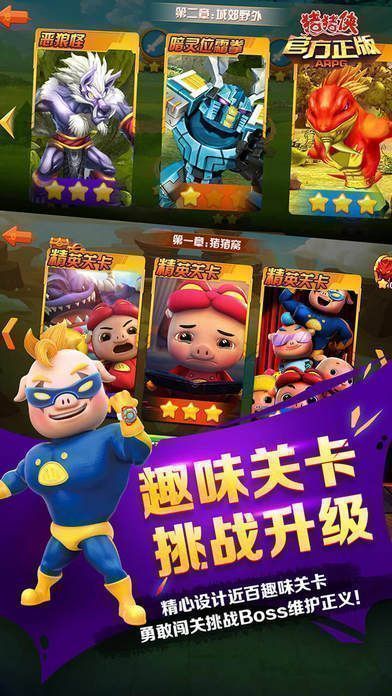“噜啦噜啦咧,噜啦噜啦咧”——熟悉的旋律响起,国民动漫经典IP《猪猪侠》正式登陆手游舞台!由官方正版授权、原班人马倾力监制的3D动作卡通ARPG手游《猪猪侠(官方正版ARPG)》强势来袭。当邪恶势力再度席卷童话世界,昔日守护者铁拳虎已成传说,唯有召唤猪猪侠与五灵守卫重聚,才能扛起正义之旗,逆转崩坏命运。现在,就等你加入这场热血冒险,踏着节奏感十足的BGM,开启属于你的英雄之路!