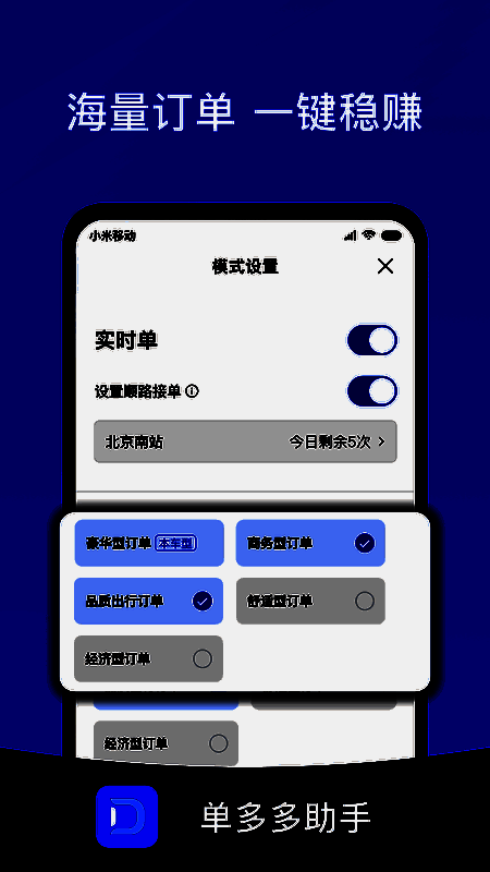 单多多助手app具备庞大的订单资源库,无论短途还是长途,高峰时段或平峰期,司机都能轻松找到适合自己的订单。平台采用先进算法驱动的智能派单系统,根据司机位置、历史评分及过往订单记录进行精准推送,大幅提升接单成功率。