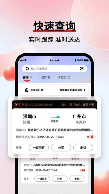依托顺丰速运多年积累的品牌口碑与服务品质,这款APP延续了“高效、安全、可靠”的核心优势。简洁直观的操作界面、流畅稳定的运行表现,使其成为各类用户群体的理想选择。