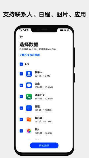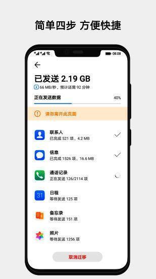 手机克隆app苹果版是由华为官方推出的一款高效、便捷的手机数据迁移工具。作为专为华为用户打造的数据搬家利器,该软件凭借其强大的功能和出色的用户体验,迅速在换机市场中占据一席之地,成为众多用户更换设备时的首选工具。