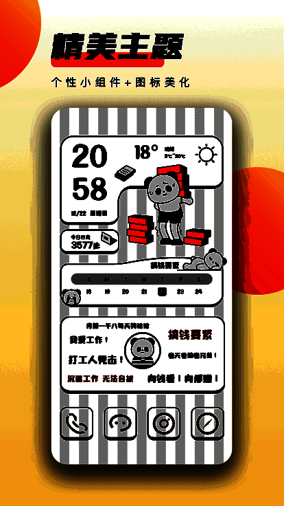 除了外观上的改变,《元气桌面壁纸》还集成了多种实用桌面小工具,如桌面笔记、快捷入口图标等,帮助用户高效管理日常事务。同时,一键式桌面整理功能也能迅速优化杂乱布局,让你的手机界面既美观又整洁。
