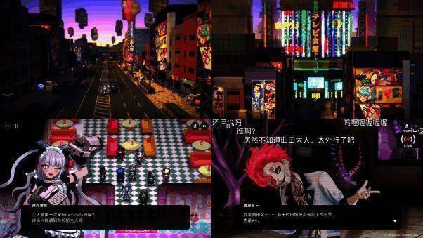 "战极死游" 中的地图探索是以 2D 点阵风格来呈现新东京国的城市样貌。玩家可以实际操作角色在城市中进行冒险并体验故事剧情。