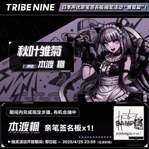 此外,饰演“秋叶雏菊”的声优——本渡枫也为玩家们录製了特别的留言视频,官方 bilibili 亦同时举其签名板的抽奖活动,敬请粉丝们不要错过!