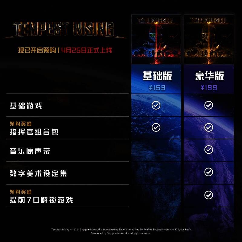 经典RTS精神续作《风暴崛起》将于4月25日在Steam平台正式上线,基础版售价159元。售价199元的豪华版现已提前解锁,现在购买便可立即体验。