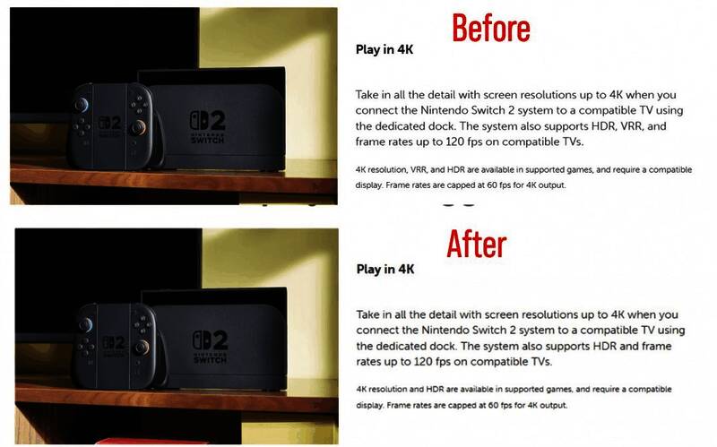 任天堂已从Switch 2官网上删除了多处提及支持VRR(可变刷新率)的描述。