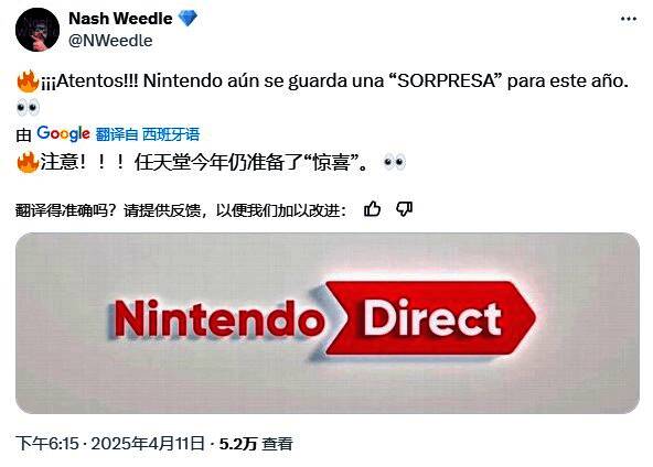 Weedle在X平台推文中透露,任天堂计划在2025年推出一款未公开的重磅软件惊喜。网友推测这可能会与6月Switch2发布后的任天堂直面会相关联——毕竟老任向来习惯通过直面会公布重大消息。