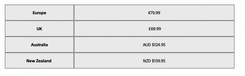 *以上未列出的EMEA部分市场的建议零售价也可能会上调。请咨询您当地的零售商或访问direct.playstation.com(如有)。