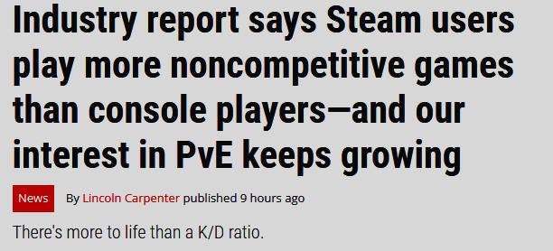 与人斗其乐无穷?日前外媒报道,Newzoo通过对Steam平台2024年每天游玩2小时的100万以上玩家发布的问卷调查显示,其中有58%的玩家更喜欢没有PVP要素的纯正PvE游戏。
