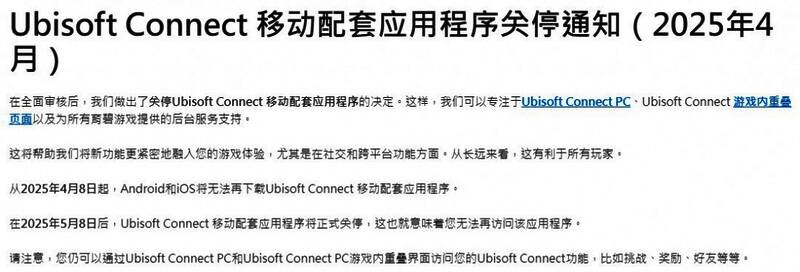 育碧强调,其他平台的Ubisoft Connect仍将正常运营,玩家可正常使用聊天、挑战、奖励、好友等功能,不会受到此次调整的影响。