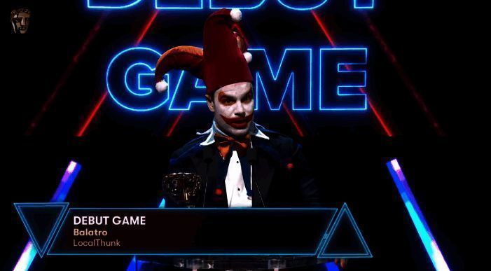 4月10日今天,英国奥斯卡2025颁奖礼举行,经典游戏《小丑牌》斩获其中的游戏大奖,有趣的是领奖者并非开发组成员,而是真人广告中版演小丑的演员,而且身着标准小丑服,令所有在场者印象深刻点赞。
