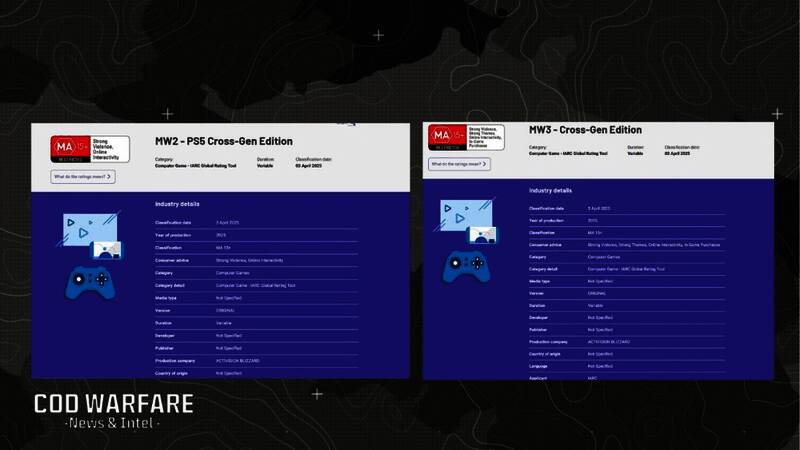 虽然分级网站上只用了MW2,MW3,而且其中一个明确提到了PS5,但考虑到重启的MW2,MW3已经登陆了PS5平台——《使命召唤19:现代战争2》(2022)、《使命召唤20:现代战争3》(2023),因此这两个游戏很显然是原版的《使命召唤6:现代战争2》和《使命召唤8:现代战争3》。