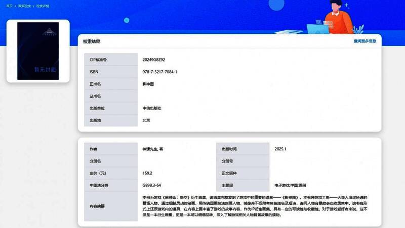 本书将游戏主角——天命人沿途所遇的精怪人物,通过细腻灵动的笔画,用传统国画技法刻画人物,绣像旁不仅附有角色姓名及短诗,连同人物背景故事也收录其中。该书在形式上还原游戏内的道具,在内容上更丰富了游戏的故事内容,作为IP衍生画集,具有一定的可读性与收藏性。