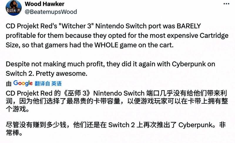 据国外网友爆料,CDPR为任天堂Switch推出的《巫师3》移植版“几乎”不赚钱,这是因为CDPR选择了最昂贵的卡带容量,这样玩家们就能在卡带上拥有整个游戏。