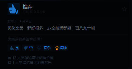 根据网友反馈,《最后的生还者2:重制版》PC版的优化比1代有了巨大的进步,“优化无敌,2K画质拉满一百多帧,配合ds手柄获得极致的游戏体验”。