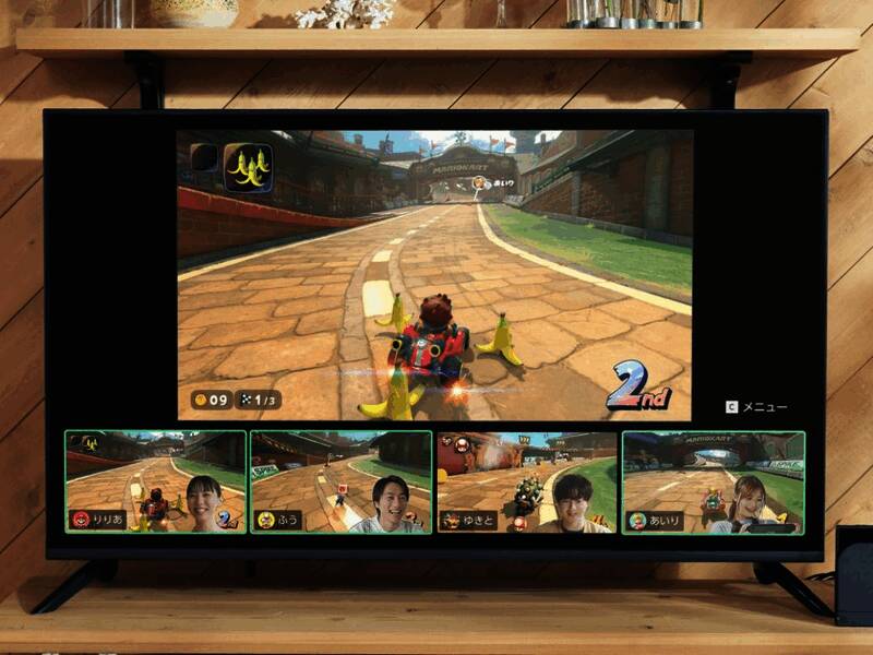 所有聊天参加者正在游玩同一款游戏时,当然可以分享画面。但如果有些人游玩「玛利欧赛车」,有些人游玩「萨尔达传说」……即使大家游玩的游戏各不相同,仍然可以边观看对方的游戏画面边聊天。