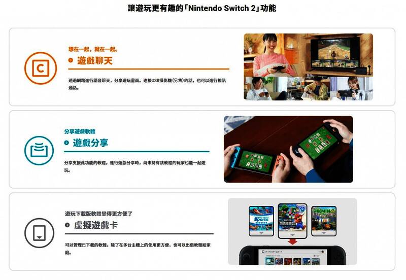 启用该功能需要联网,任天堂Switch会员和任天堂账户。视频聊天需要兼容的USB摄像头。该功能并不是所有国家都能使用。