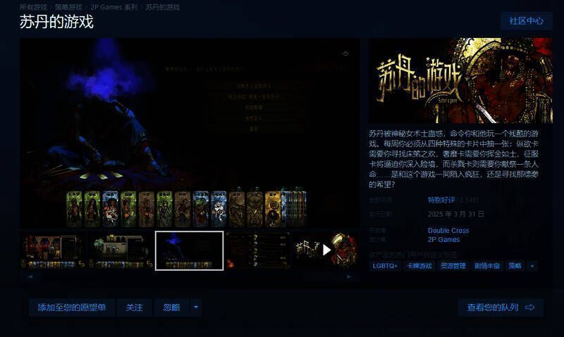 小骷髅非常感谢大家的支持!《苏丹的游戏》在Steam的销量已经超过了10万份!