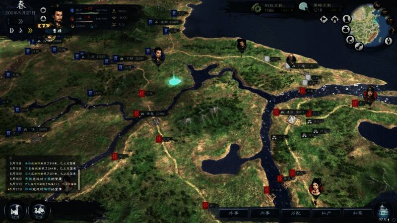 - 武将以积累功绩晋升管理更多领土;